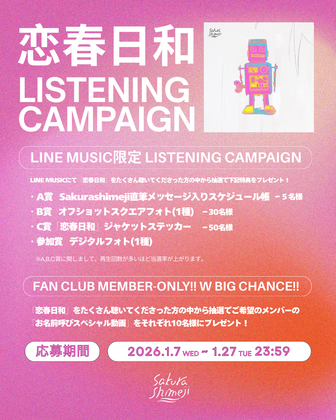 Sakurashimejiオフィシャルファンクラブ「6スタ14時集合で。」会員限定でWビッグチャンス!